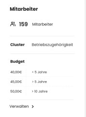 Auf einem Blick ist zu erkennen wie viele Mitarbeiter aktuell aktiv sind, und wie viel Personen welche Budget höhe zur verfügung haben.